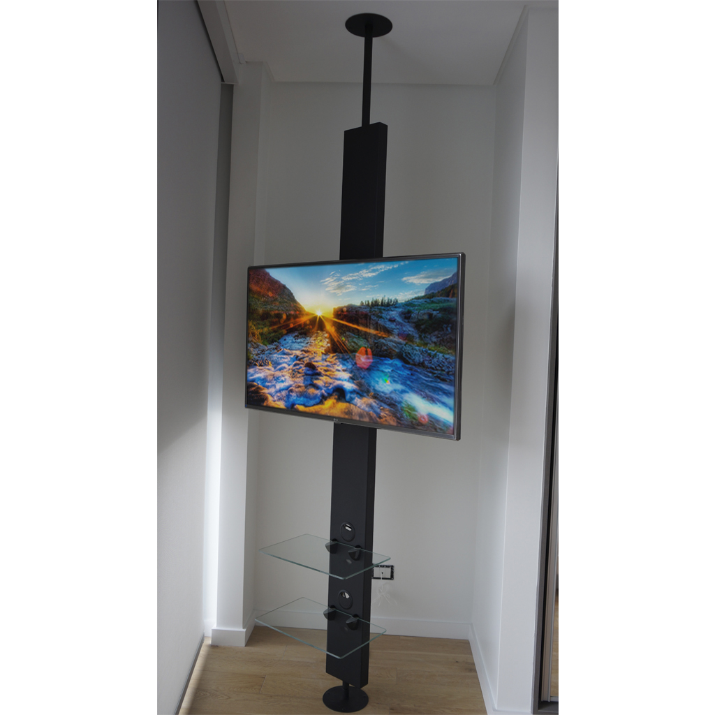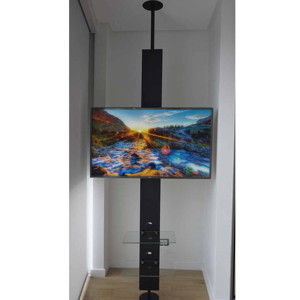 Soporte de piso a techo que le permite colocar su tv prácticamente en cualquier lugar que desee sin necesidad de instalar en la pared, solo se requiere un piso y techo firme. La instalación es rápida y fácil. Ideal para instalaciones comerciales y domésticas. Se incluyen todos los materiales de montaje de televisión: M4, M5.