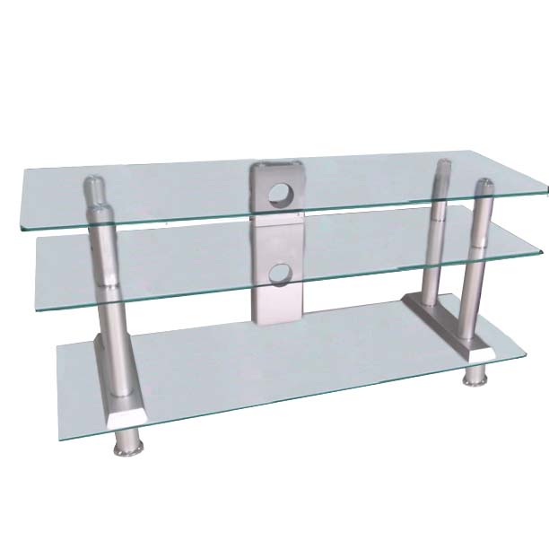Mesa de vidrio templado transparente con terminaciones en aluminio
